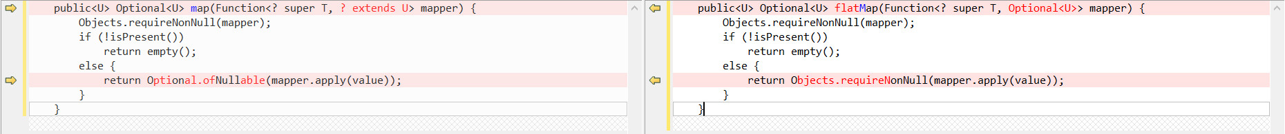 // 与map()方法类型,不同的是它的mapper结果已经是一个Optional,不需要再对结果进行包装