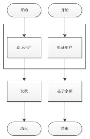 这个验证用户这个子流程就成了一个条线,也可以理解成一个切面,这里的切面只插了两三个流程,如果其它流程也需要这个子流程,也可以插到其它地方去。