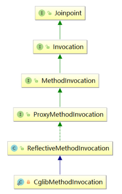 其中这4个:连接点(JoinPoint)、通知(advise)、切入点(pointcut)、顾问(advisor),在spring中都定义了接口和类来表示这些对象,下面我们一个个来看一下。