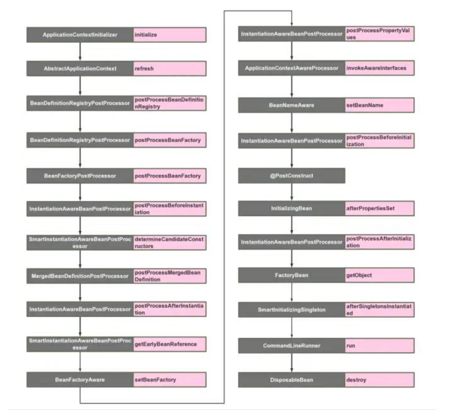 准确的说,这个应该不算spring&springboot当中的一个扩展点,ApplicationListener可以监听某个事件的event,触发时机可以穿插在业务方法执行过程中,用户可以自定义某个业务事件。但是spring内部也有一些内置事件,这种事件,可以穿插在启动调用中。我们也可以利用这个特性,来自己做一些内置事件的监听器来达到和前面一些触发点大致相同的事情。